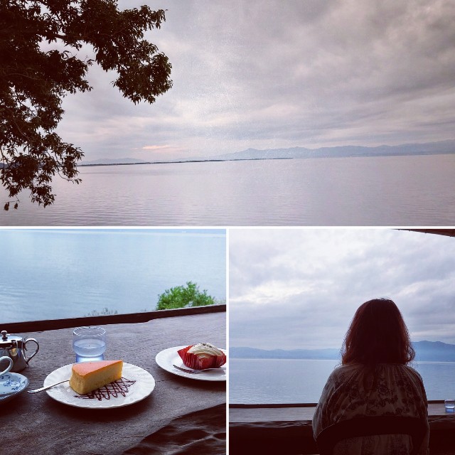 2019-10-19 琵琶湖のほとりに住んでいます こんな日々でして 曇りだけれど 琵琶湖に夕日が落ちていくのを見に来ました すぐに形を変える雲と鳥のさえずり時たま魚の跳ねる音 いつでも素敵なマザーレイクにありがとう